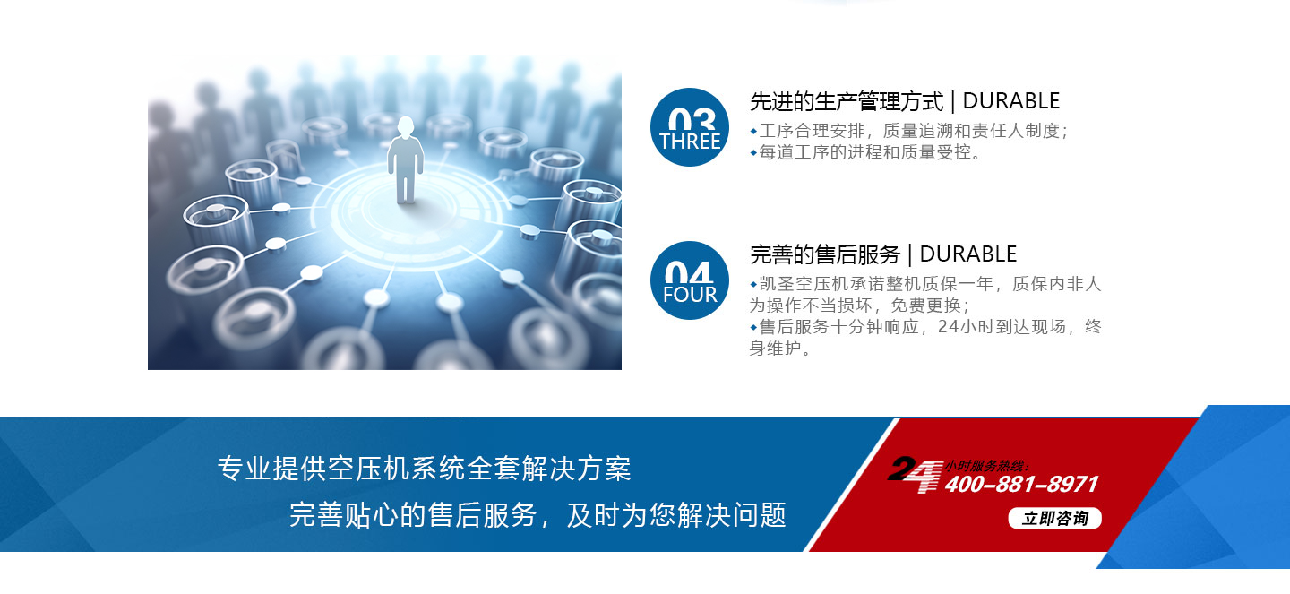 合肥凱圣節(jié)能科技有限公司是從事永磁變頻螺桿壓縮機系統(tǒng)的設(shè)計、制造、安裝、調(diào)試、維修與一體的公司。 在多年的螺桿空壓機研發(fā)與推廣歷程里,凱圣聚集和培養(yǎng)了大量壓縮機技術(shù)設(shè)計和管理人員,迅速發(fā)展成為集研究、生產(chǎn)、銷售、服務(wù)等環(huán)節(jié)為一體、嚴(yán)格按照標(biāo)準(zhǔn)執(zhí)行的企業(yè),公司成立開始,即以滿足客戶的實際需求為己任,大力開拓國內(nèi)外節(jié)能型空壓機市場,并始終保持創(chuàng)新精神,全力研發(fā)更為節(jié)能的螺桿式空壓機,努力站在空壓機節(jié)能領(lǐng)域的排頭位置。 應(yīng)用范圍:公司產(chǎn)品廣泛應(yīng)用于機械、輕工、紡織、食品、石油、化工、冶金、礦山、電力、城建、醫(yī)學(xué)研究和科研等各行業(yè)中,將為節(jié)約能源做出巨大貢獻(xiàn)。公司秉承“信譽至上,...